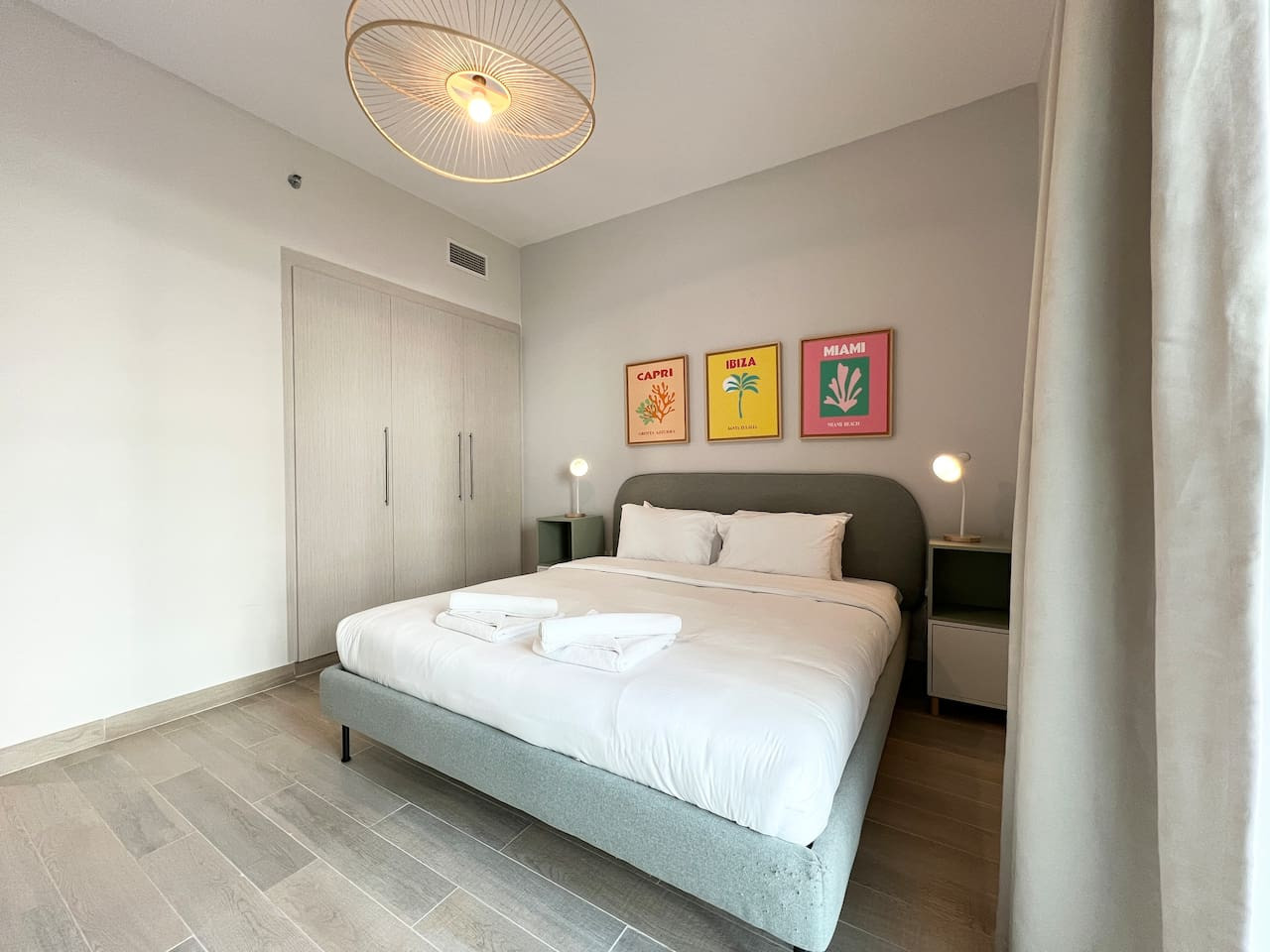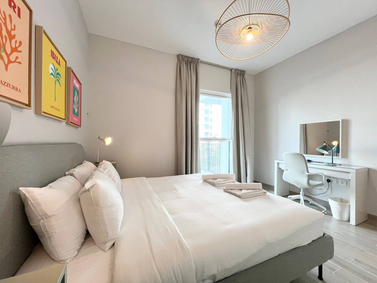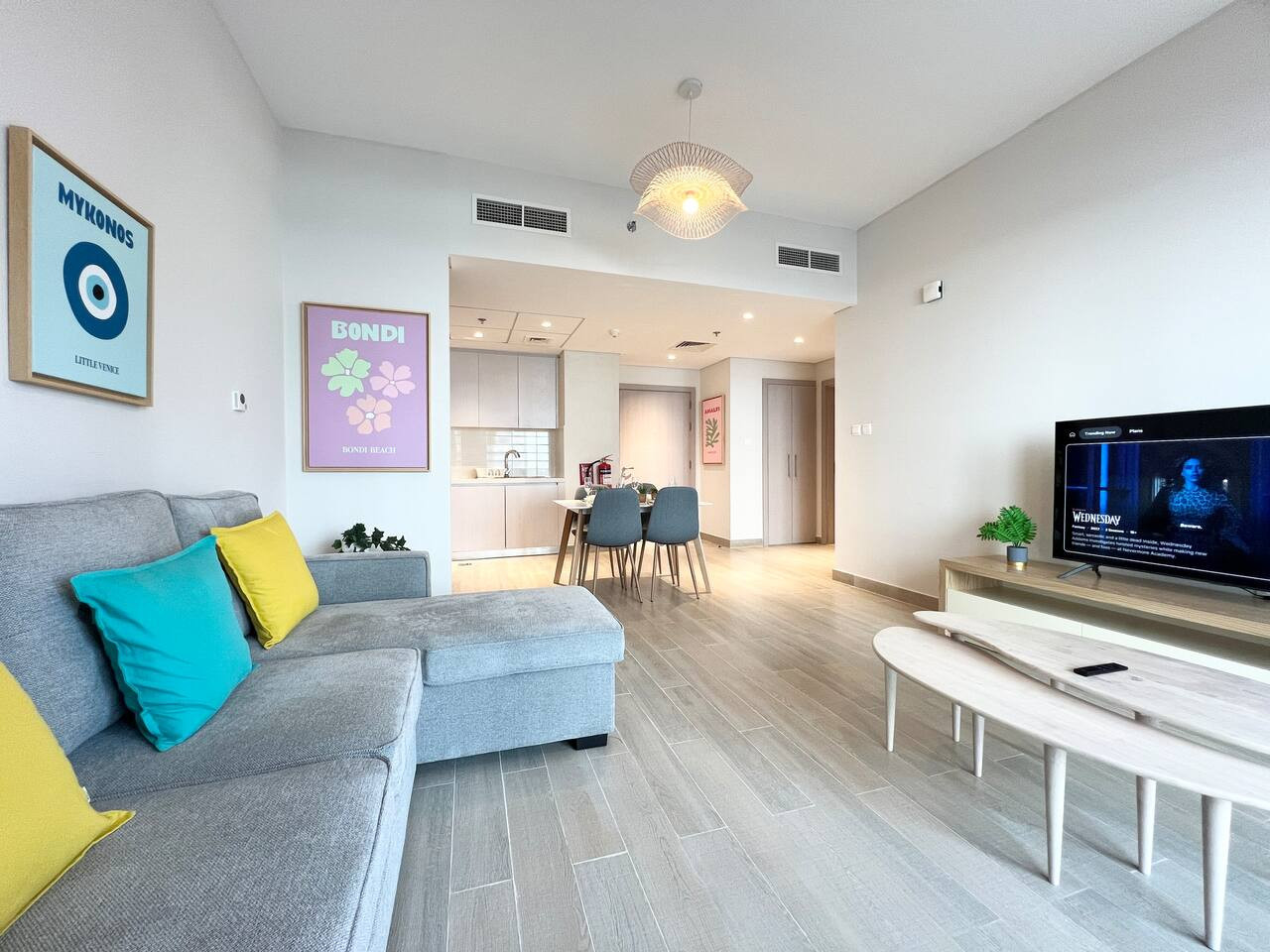 Chic & Cheerful 1BR Apartment at Waters Edge, Yas Island! Designed for comfort and style, this modern retreat features a cozy bedroom, a sofa bed in the living room, and a fully equipped kitchen with everything you need for a convenient stay. The open-plan layout creates a bright and inviting space, perfect for couples, families, or business travelers. Guests enjoy access to the building’s pool and gym, plus an unbeatable location near Yas Mall, Ferrari World, Yas Marina, and more.