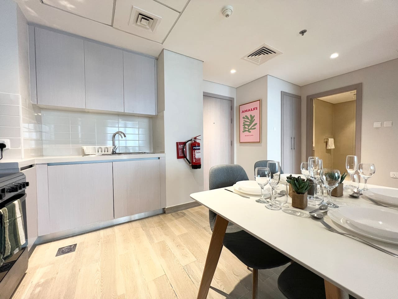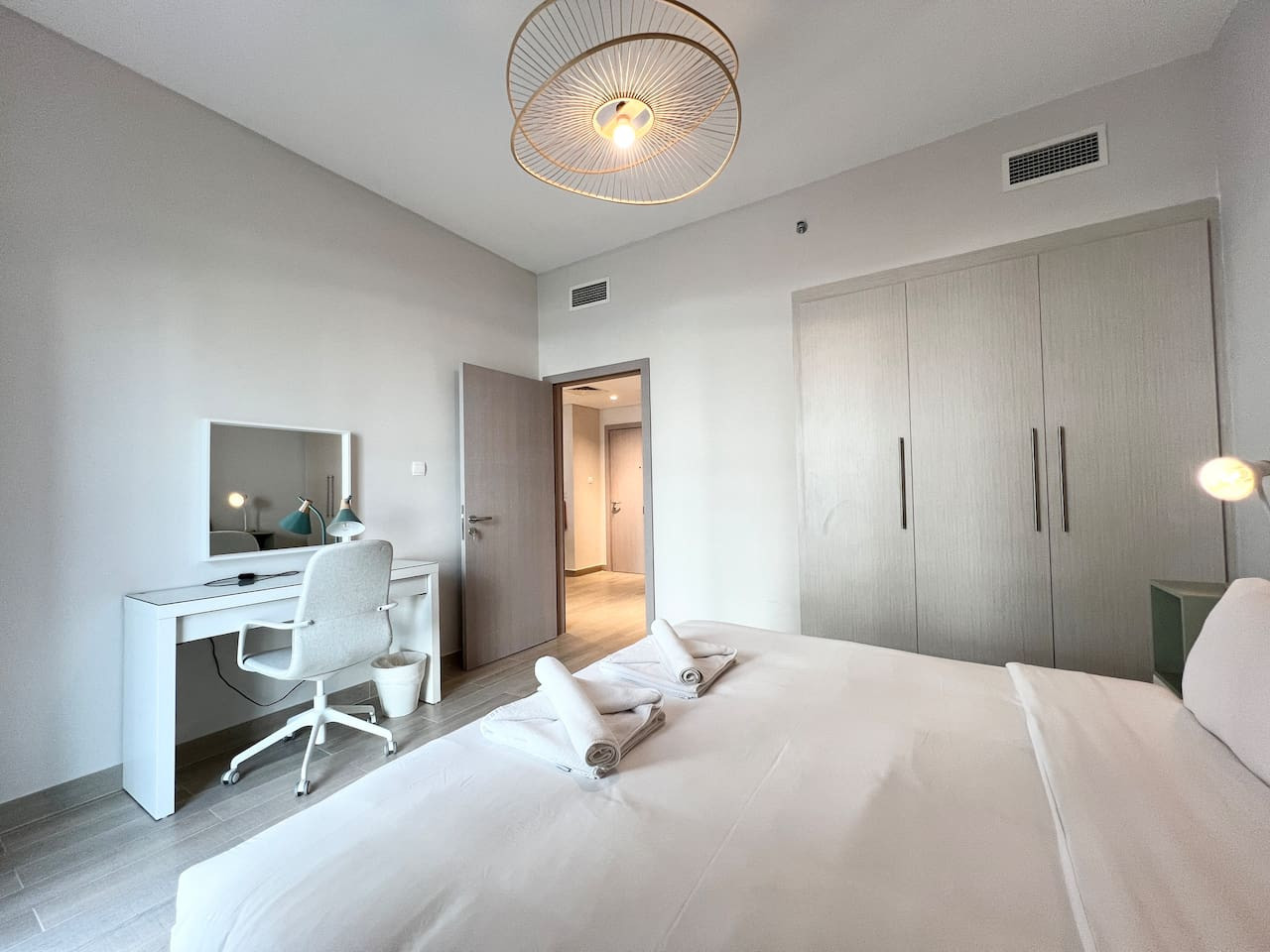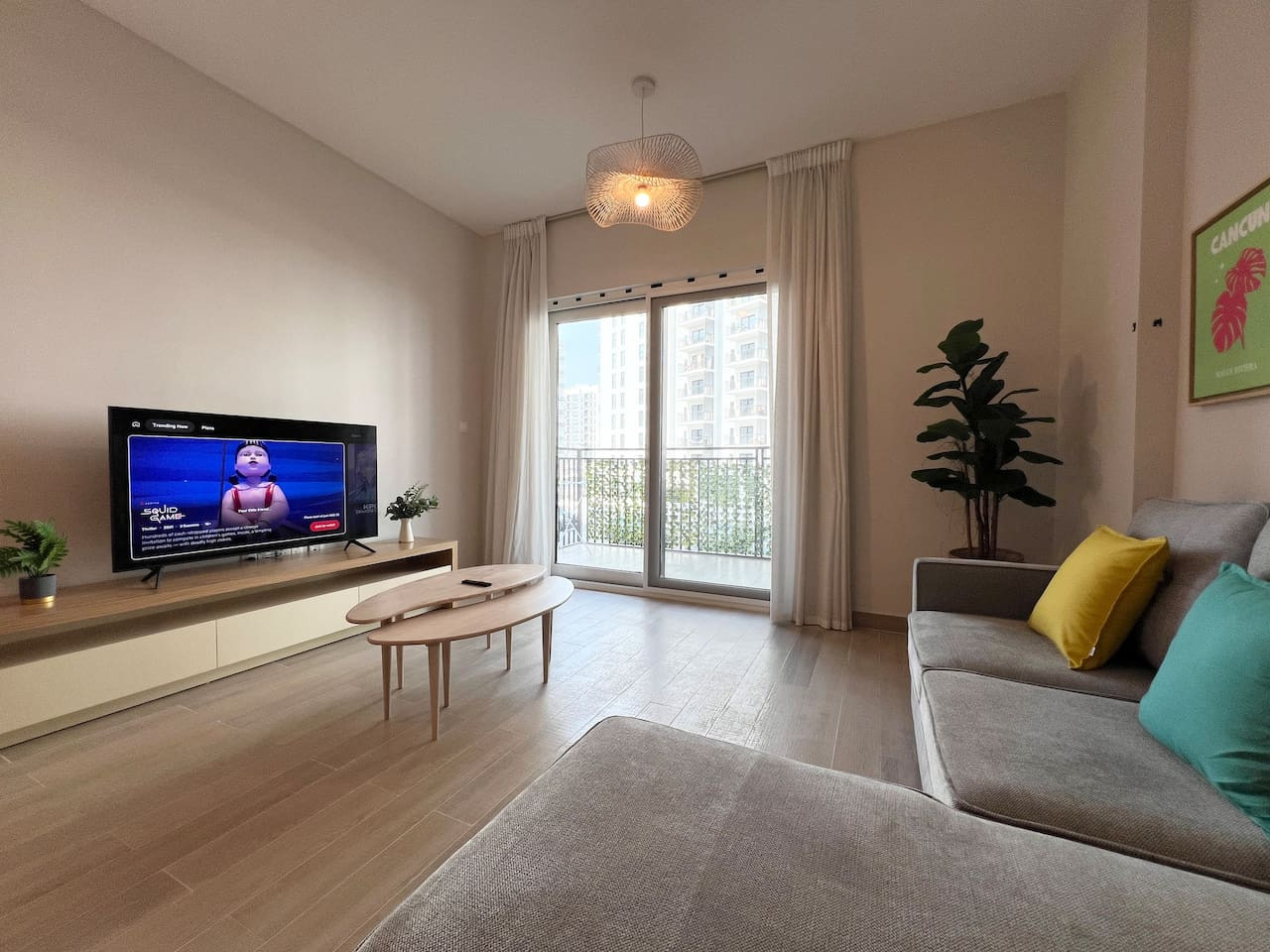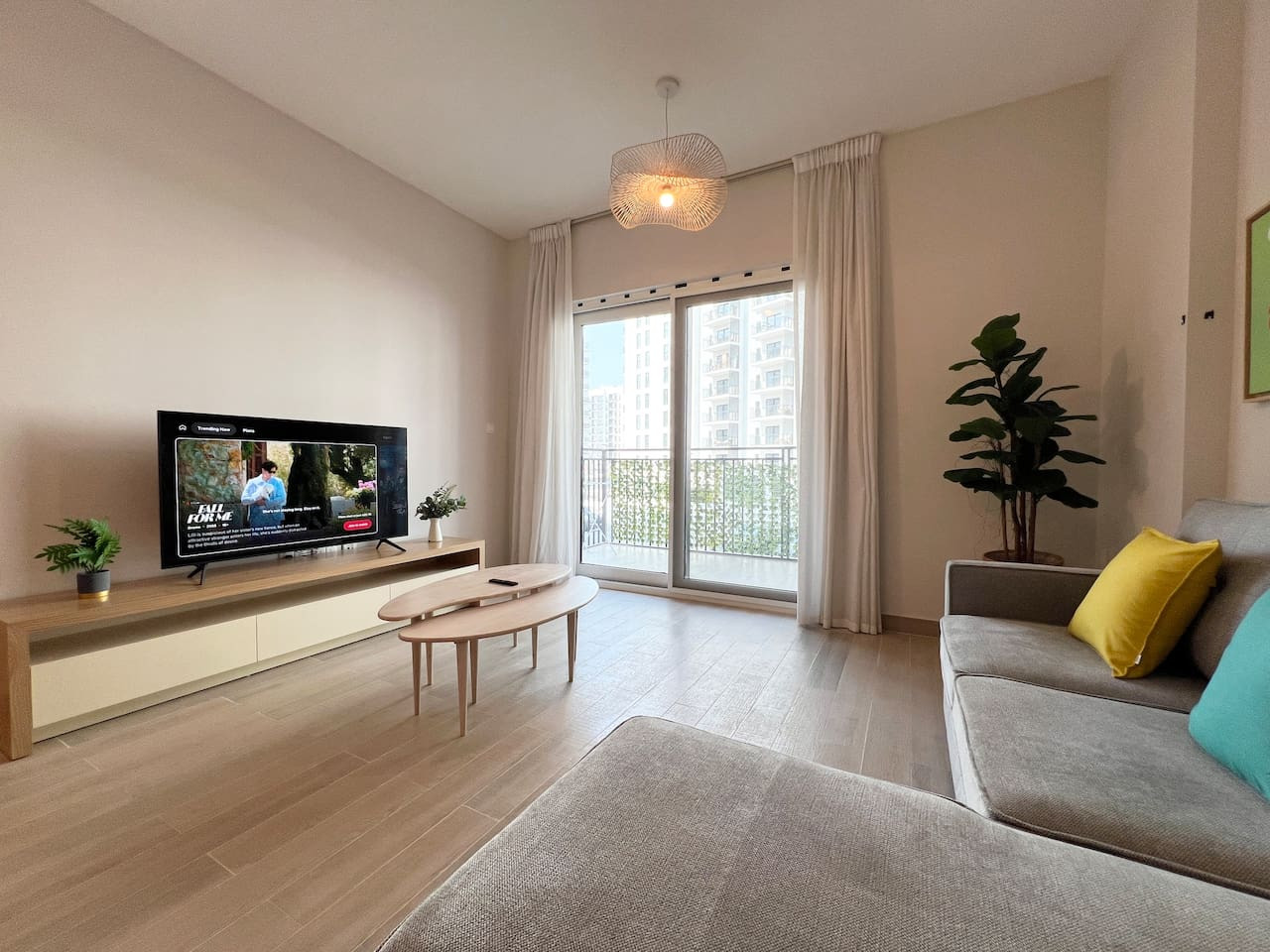 Chic & Cheerful 1BR Apartment at Waters Edge, Yas Island! Designed for comfort and style, this modern retreat features a cozy bedroom, a sofa bed in the living room, and a fully equipped kitchen with everything you need for a convenient stay. The open-plan layout creates a bright and inviting space, perfect for couples, families, or business travelers. Guests enjoy access to the building’s pool and gym, plus an unbeatable location near Yas Mall, Ferrari World, Yas Marina, and more.