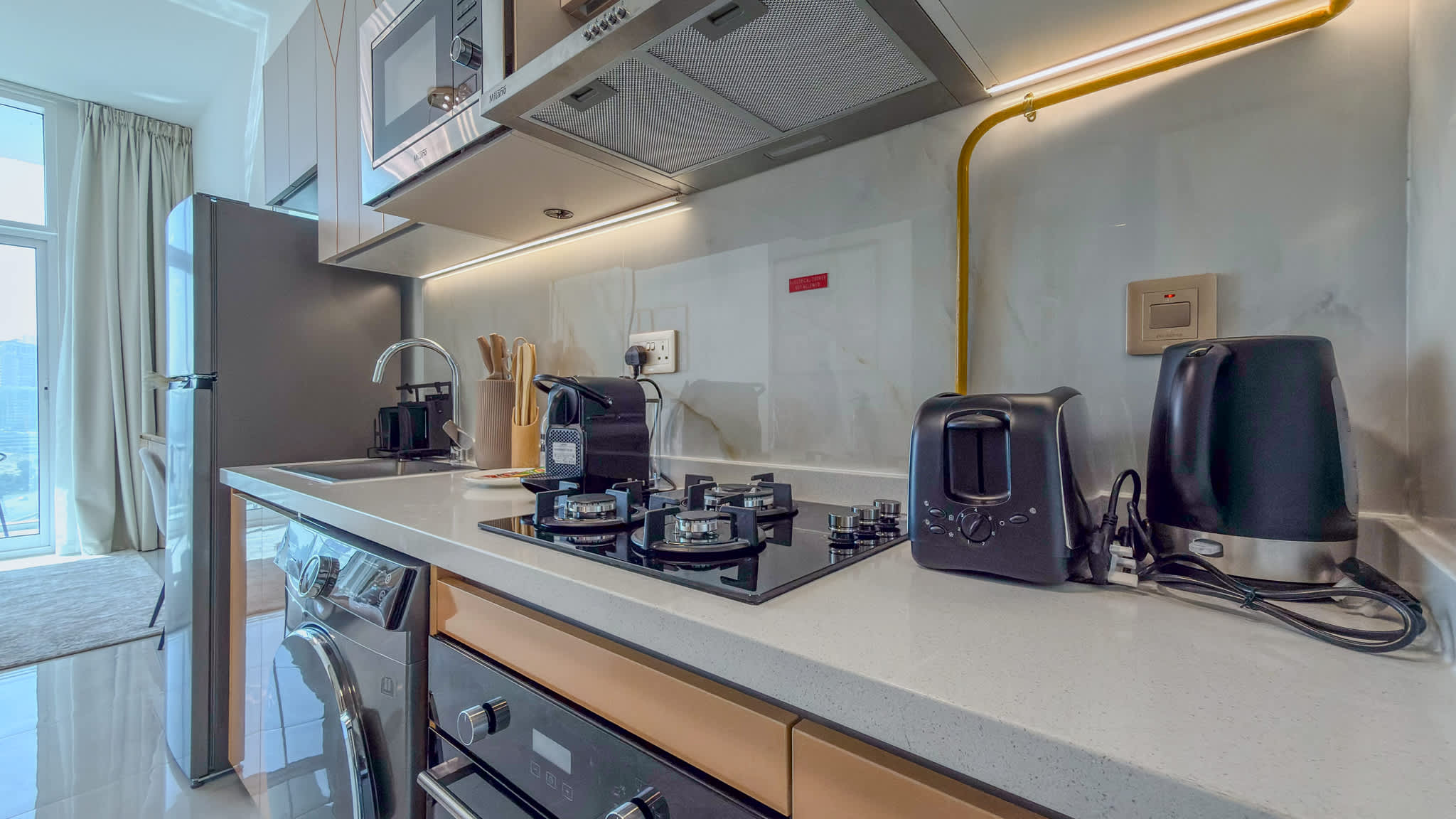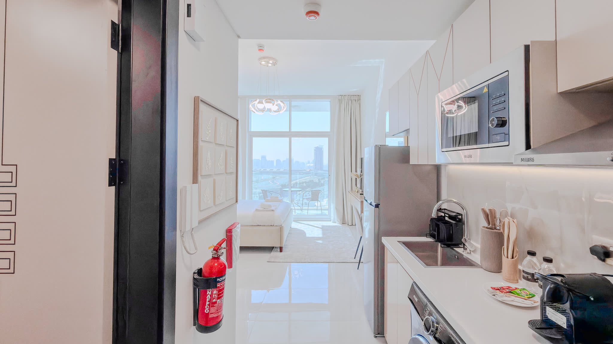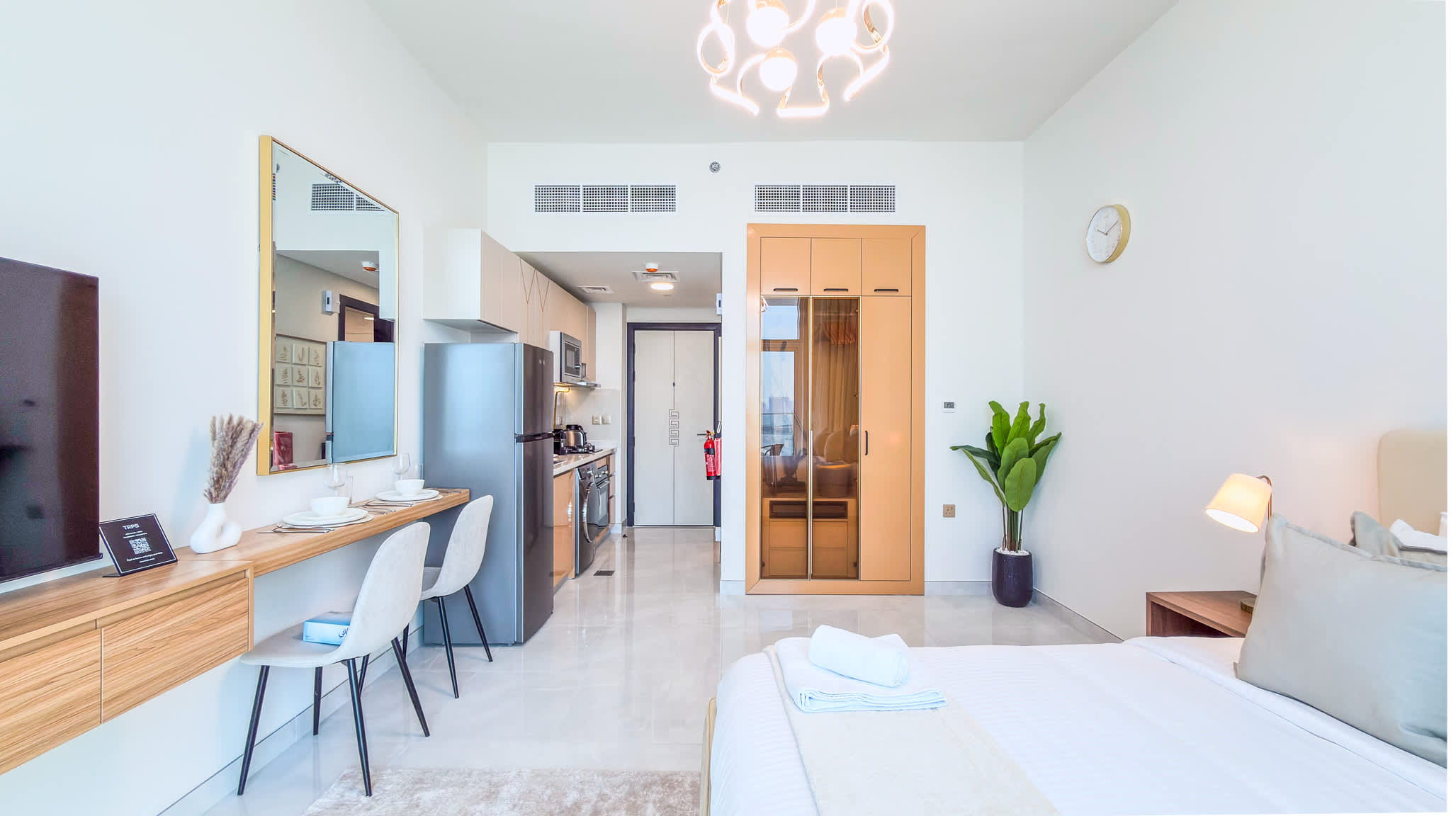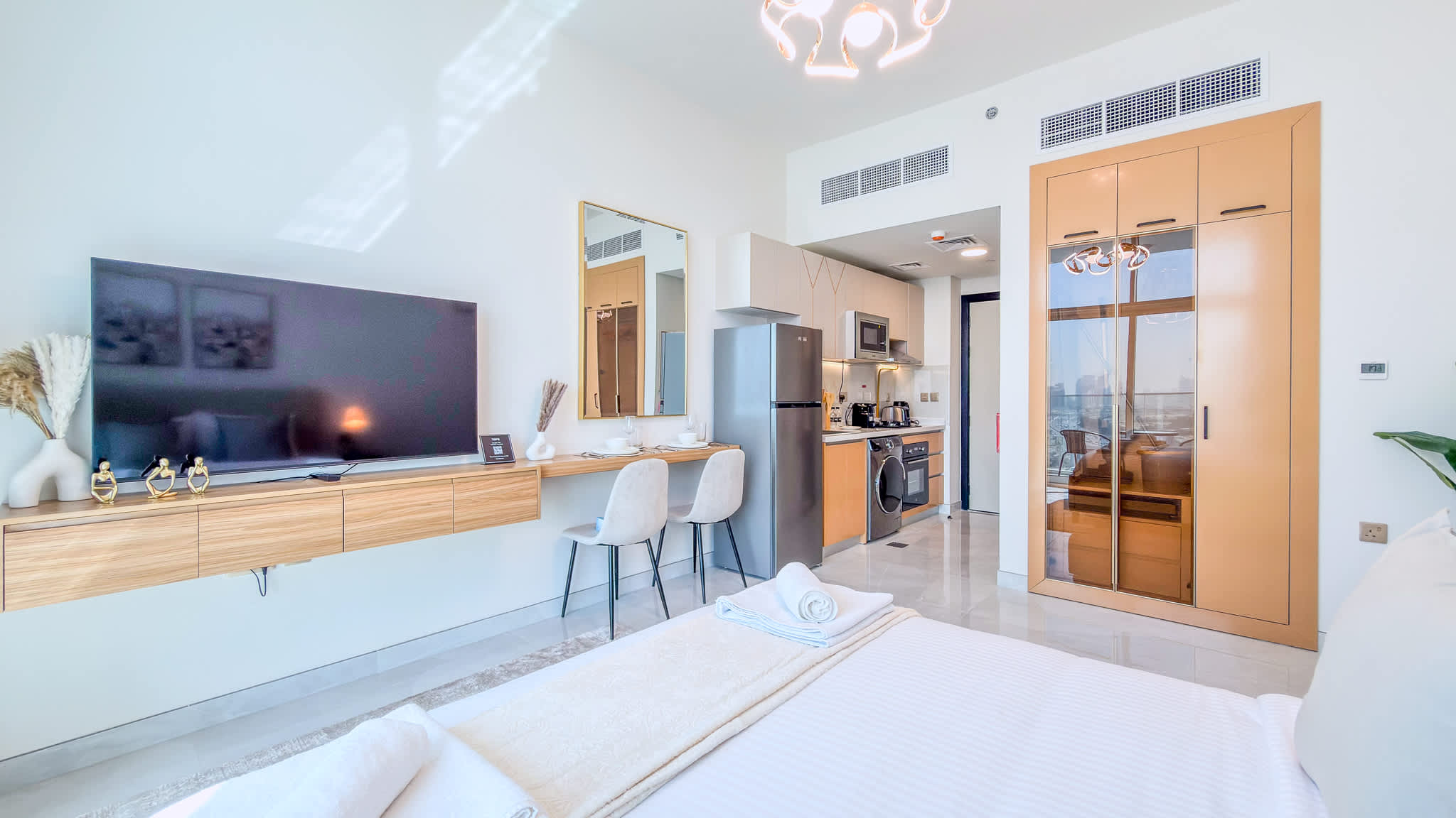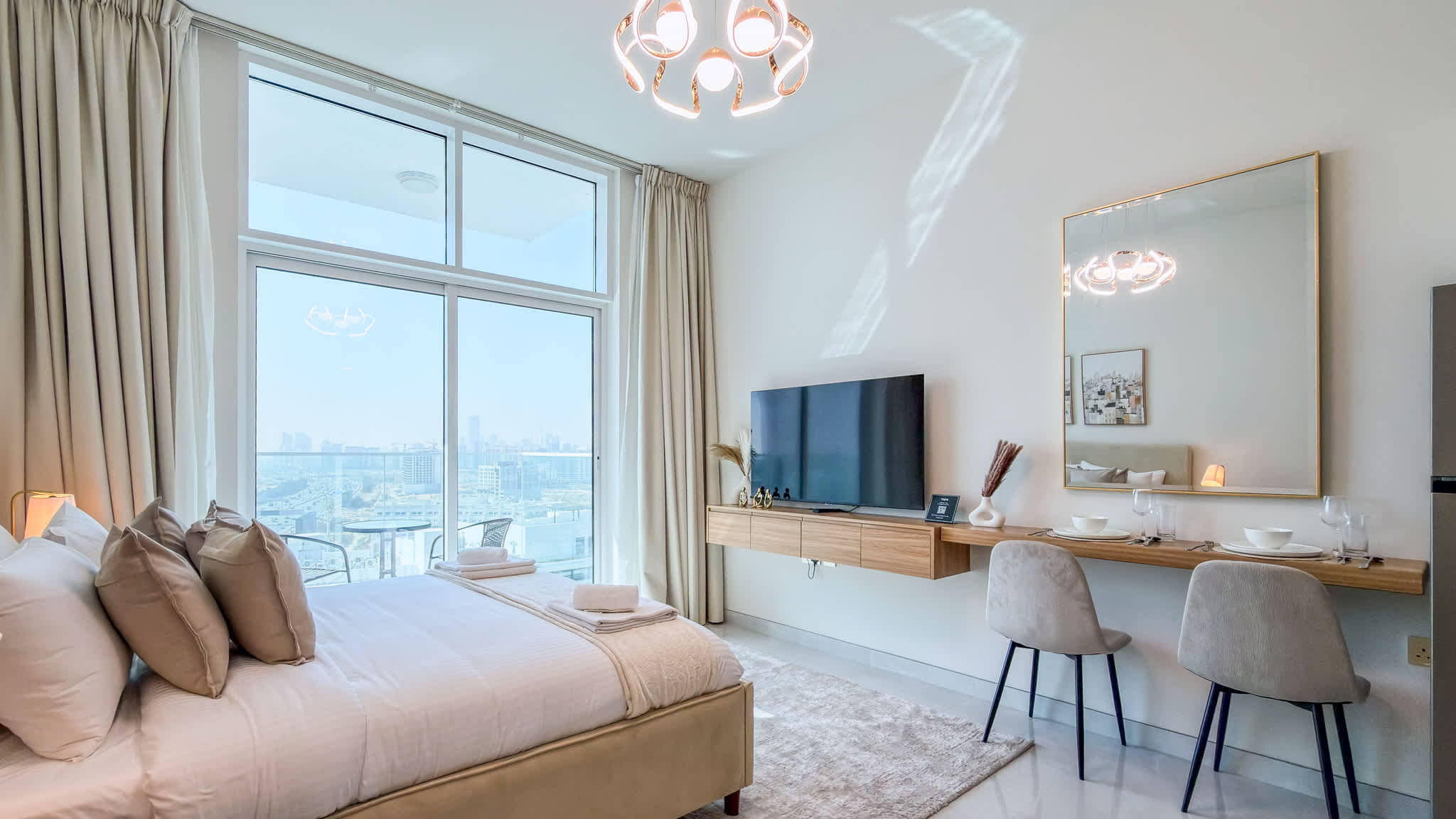 Modern high-floor studio at Skyz by Danube, Arjan—fully furnished with a smart layout, quality finishes, and excellent connectivity for a comfortable stay.