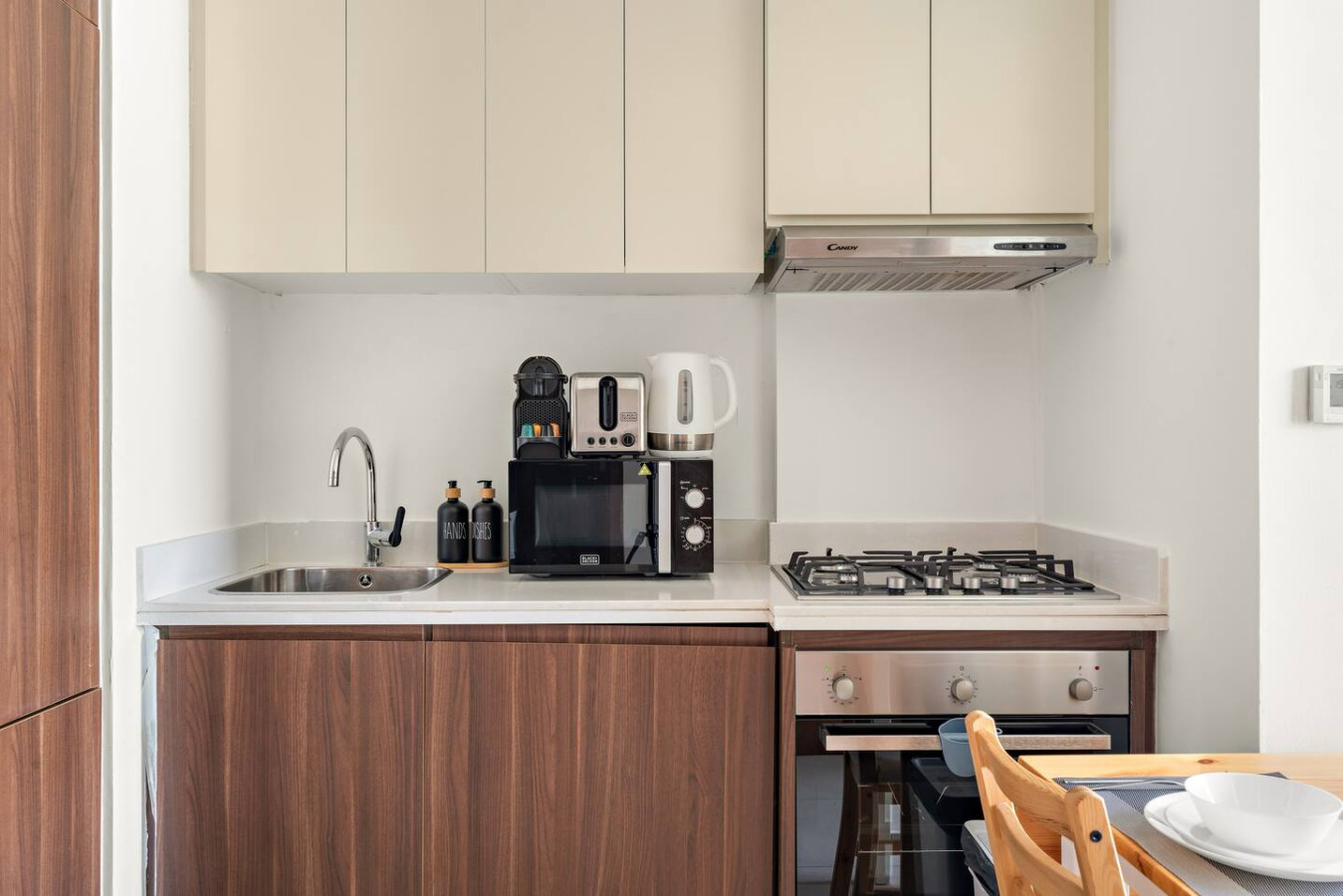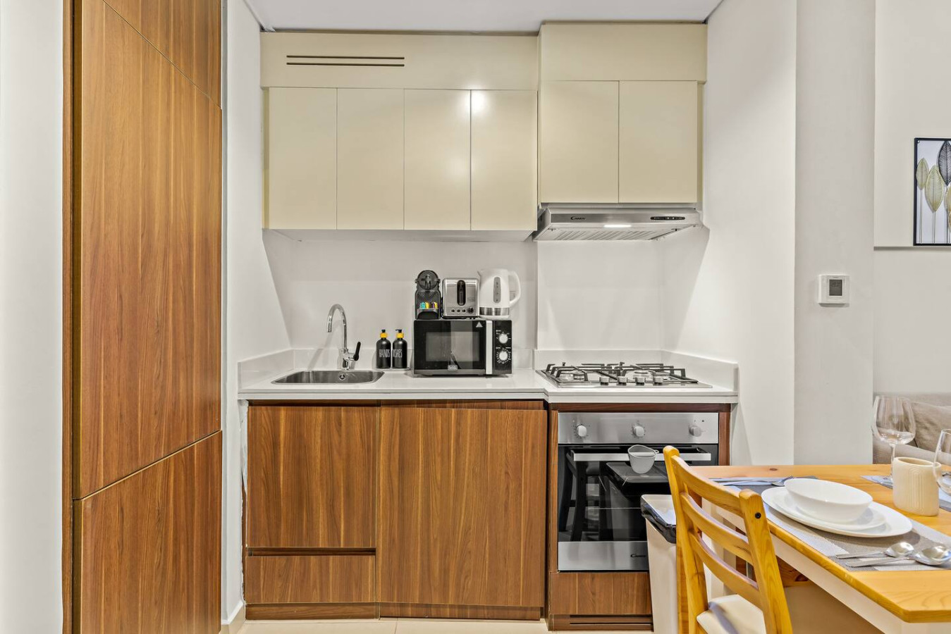 It is fully equipped with stainless-steel cooking appliances that make it suitable for preparing any meal, whether a simple breakfast, quick snack or a three-course gourmet dinner. Spacious quartz countertops and a central kitchen island provide plenty of room to work your MasterChef magic.
