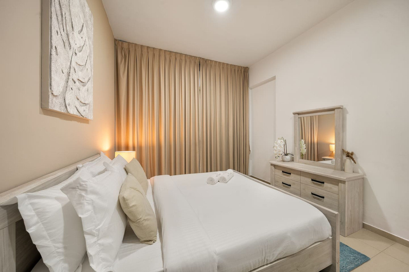 483.36 per nightWelcome to your stylish 1BR retreat in Dubai Sports City, located in the prestigious Frankfurt Sports Tower. This fully furnished apartment offers modern interiors, a cozy bedroom, and a comfortable living space ideal for business or leisure stays. Enjoy easy access to sports venues, dining, and major roads, all while relaxing in a well-appointed, peaceful setting designed for comfort and convenience.