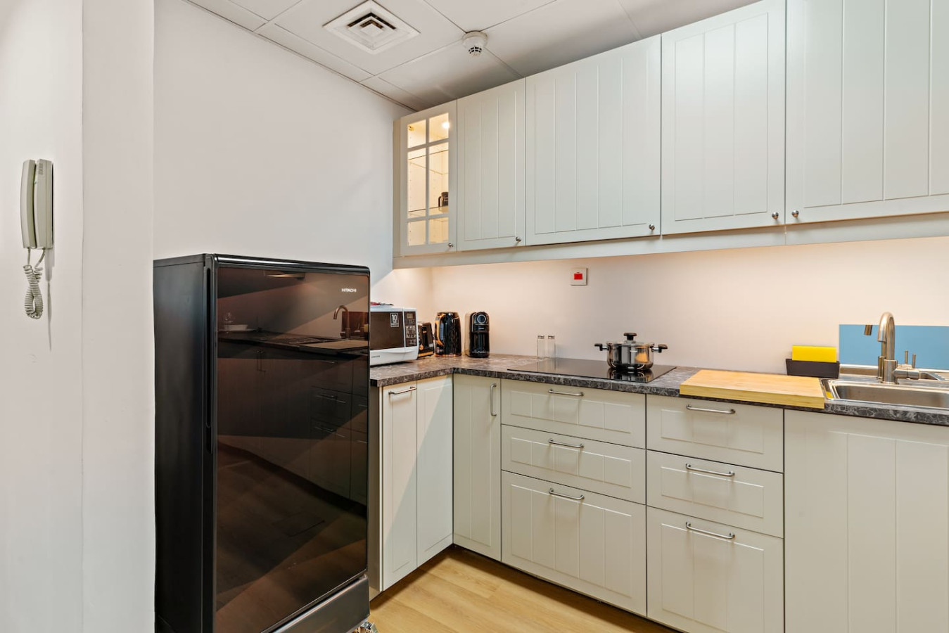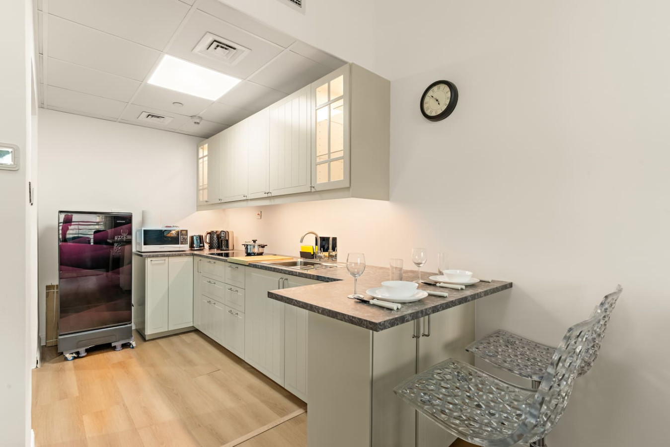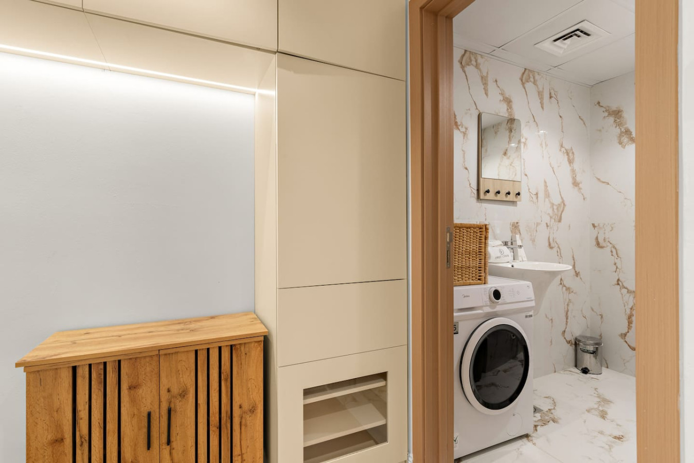 It is fully equipped with stainless-steel cooking appliances that make it suitable for preparing any meal, whether a simple breakfast, quick snack or a three-course gourmet dinner. Spacious quartz countertops and a central kitchen island provide plenty of room to work your MasterChef magic.