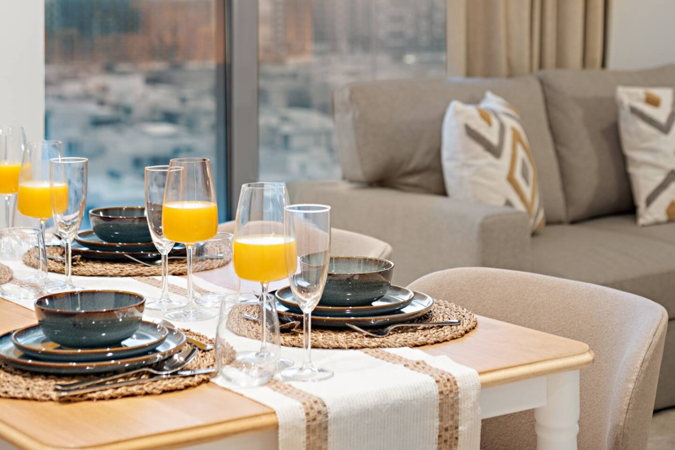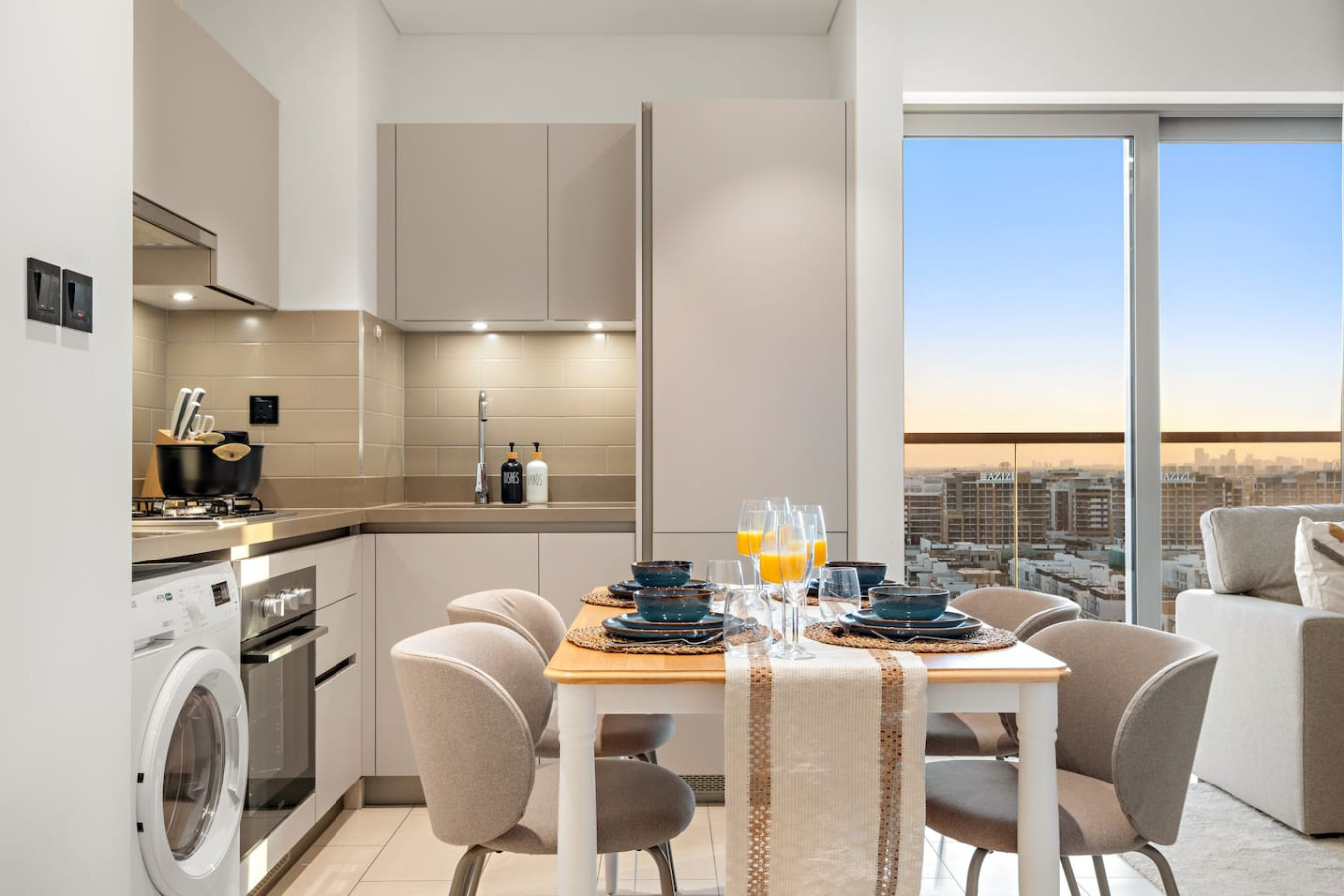 Have a few drinks in the living room while the food is getting ready. Once it’s done, serve it at the inviting dining table and enjoy a tasty meal with your loved ones.