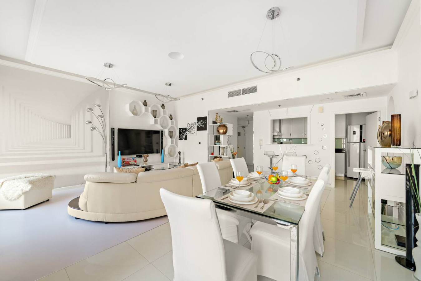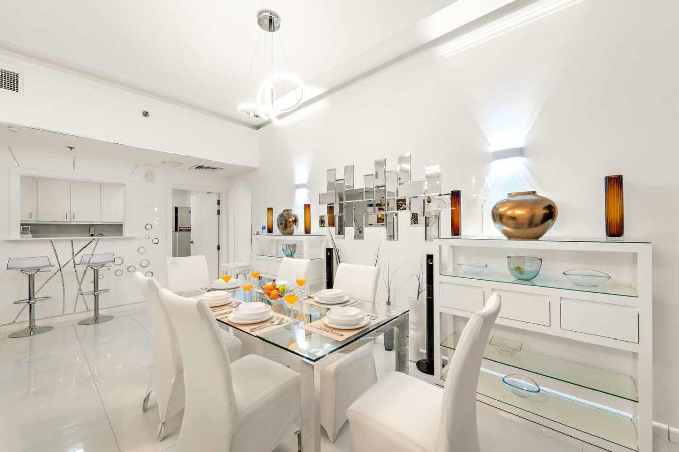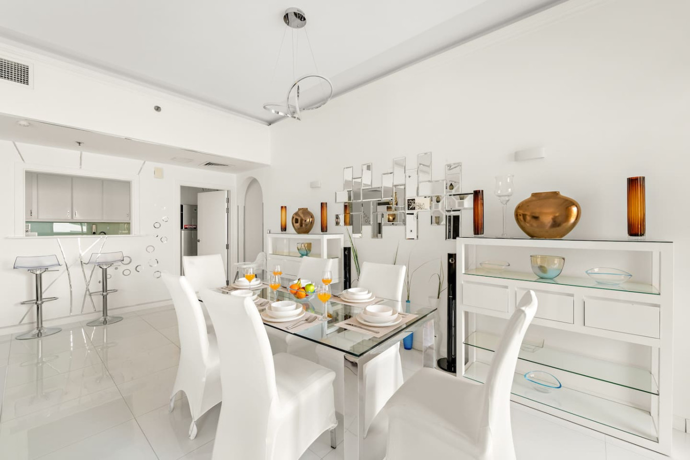 Have a few drinks in the living room while the food is getting ready. Once it’s done, serve it at the inviting dining table and enjoy a tasty meal with your loved ones.