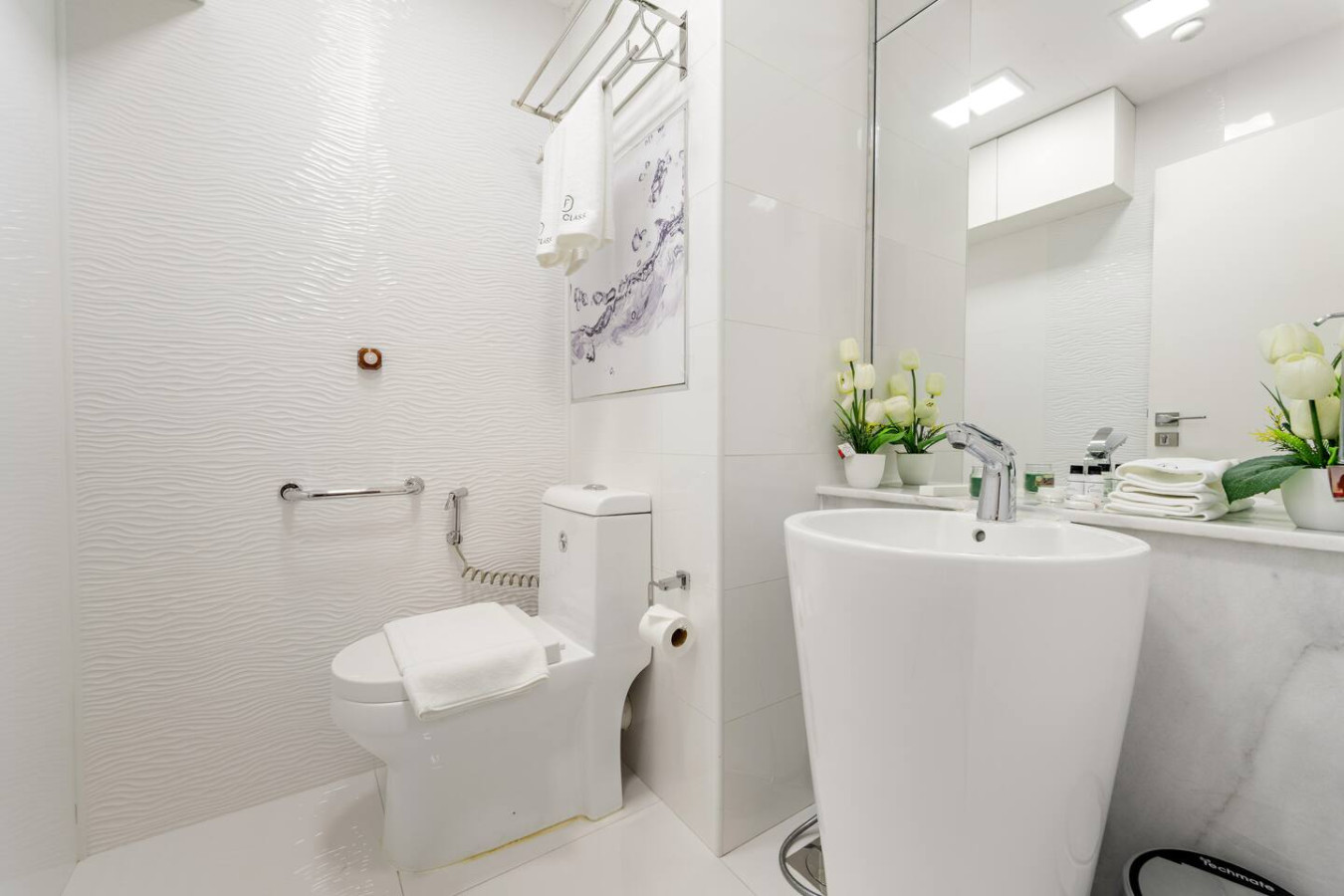 The bathroom is stocked with fresh towels and essential toiletries, so you don’t have to worry about bringing your own.