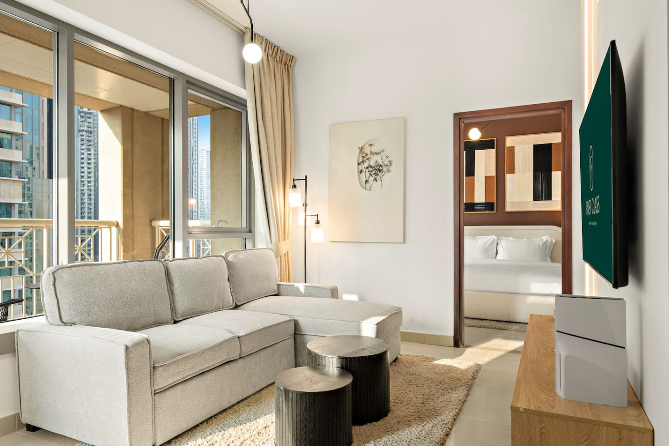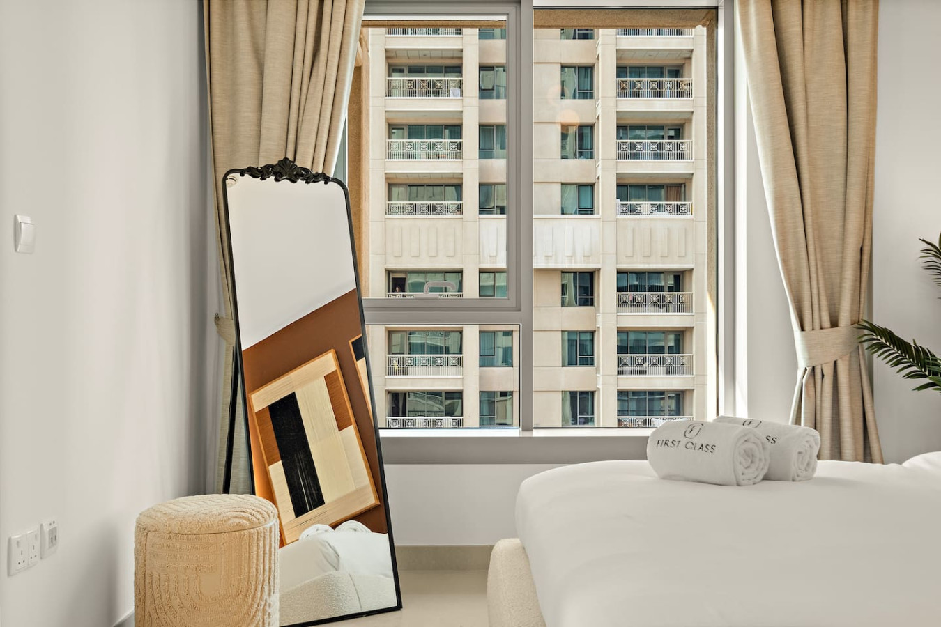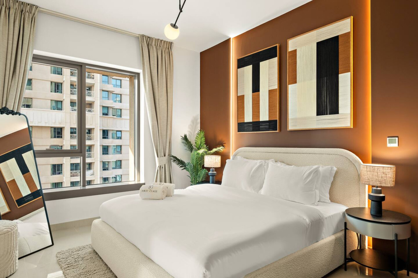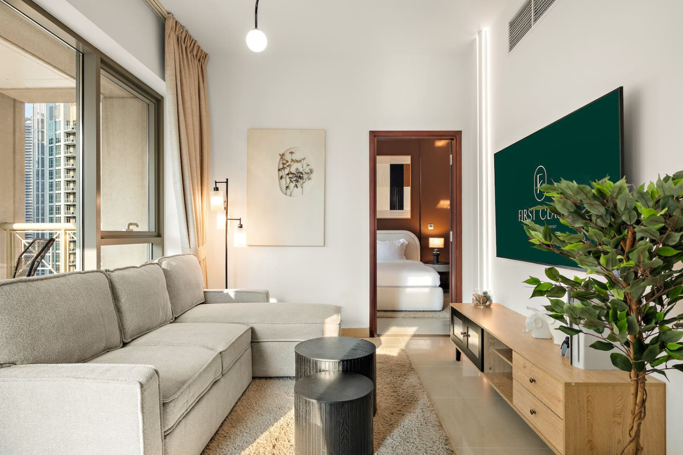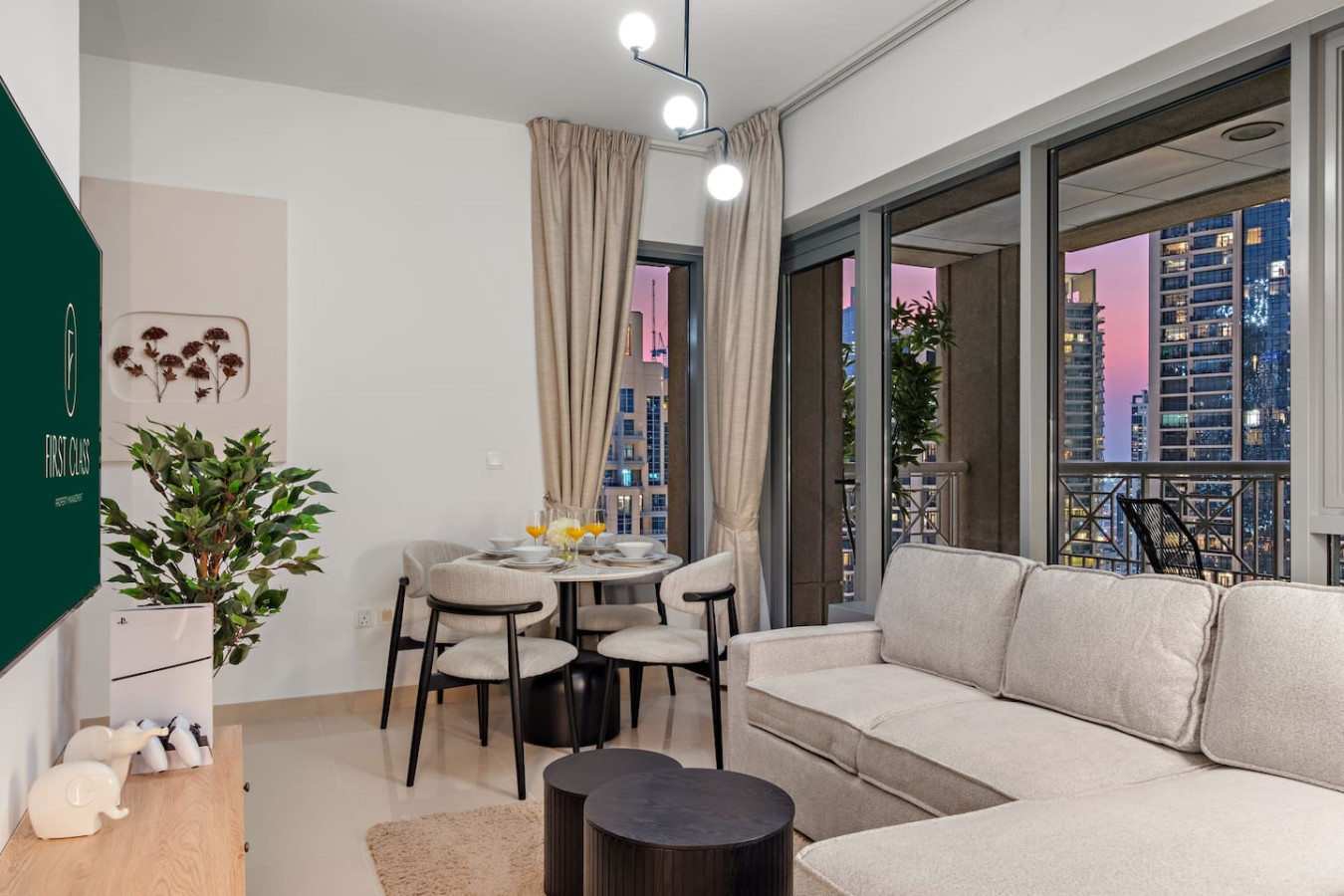 Enjoy luxury city living in this 2BR apartment with a Burj Khalifa view from the balcony 🌆✨. Just a 15-minute walk to Burj Khalifa, Dubai Mall & the iconic Dubai Fountains 🏙️. Ideally located near Downtown Dubai and major highways 🚗, it offers seamless access to top landmarks. Designed with elegant finishes, floor-to-ceiling windows, and abundant natural light ☀️, the space blends comfort, style, and upscale urban living