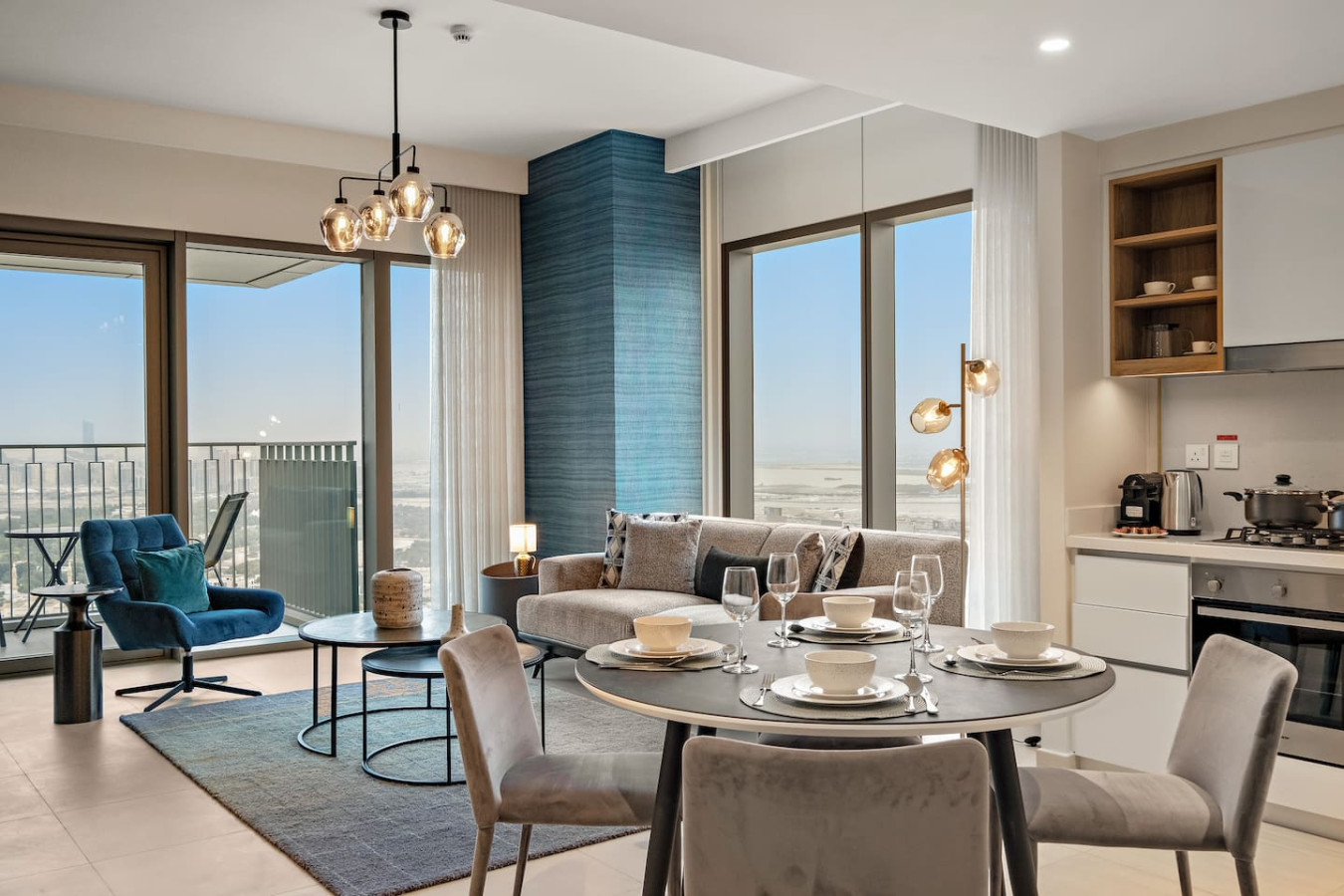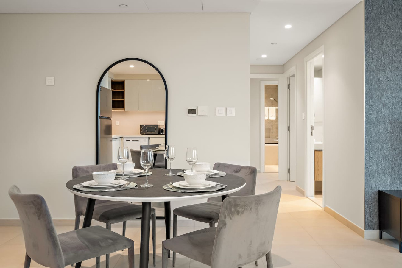 1,358.88 per nightExperience elegant and modern living in this stylish 2-bedroom retreat, perfectly located in the heart of Dubai 🏙️✨ Ideal for leisure and business travelers, it offers comfort, space, and stunning views. Just steps from Burj Khalifa 🗼, Dubai Mall 🛍️, and world-class dining, with direct mall access for ultimate convenience. Thoughtfully designed for relaxation, this peaceful yet central home blends modern design with everyday comfort.
