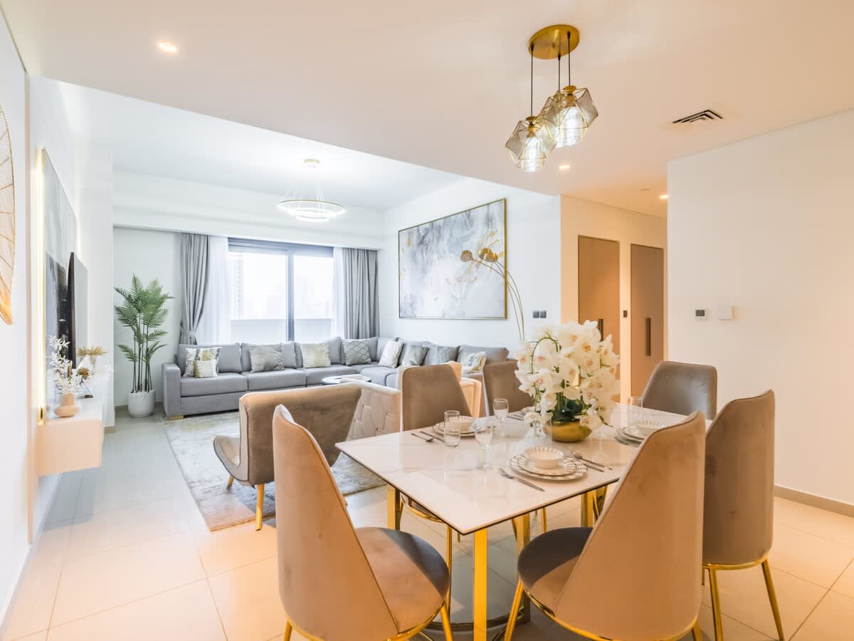 Experience iconic Dubai living in this elegant 3-bedroom apartment with a maid’s room, set in the prestigious Act One | Act Two Towers. Enjoy uninterrupted, full views of the Burj Khalifa and Dubai Fountain from a home designed for comfort, space, and refined luxury—ideal for families, business travelers, and discerning guests.