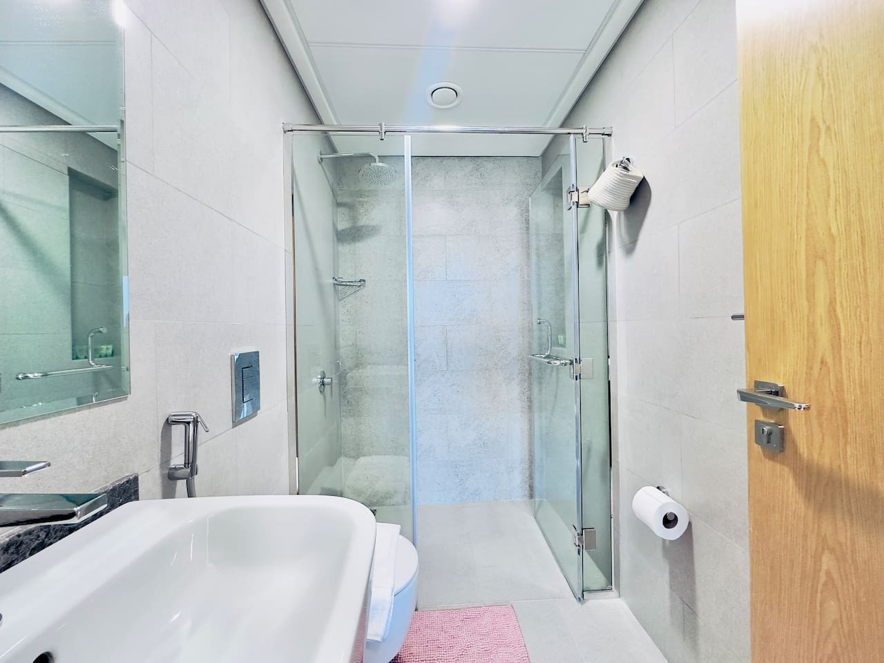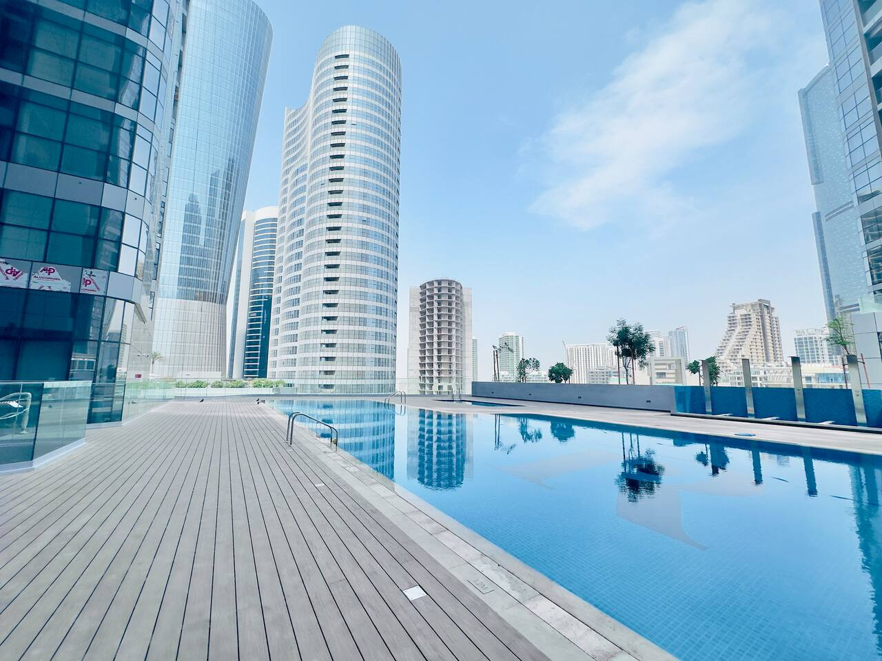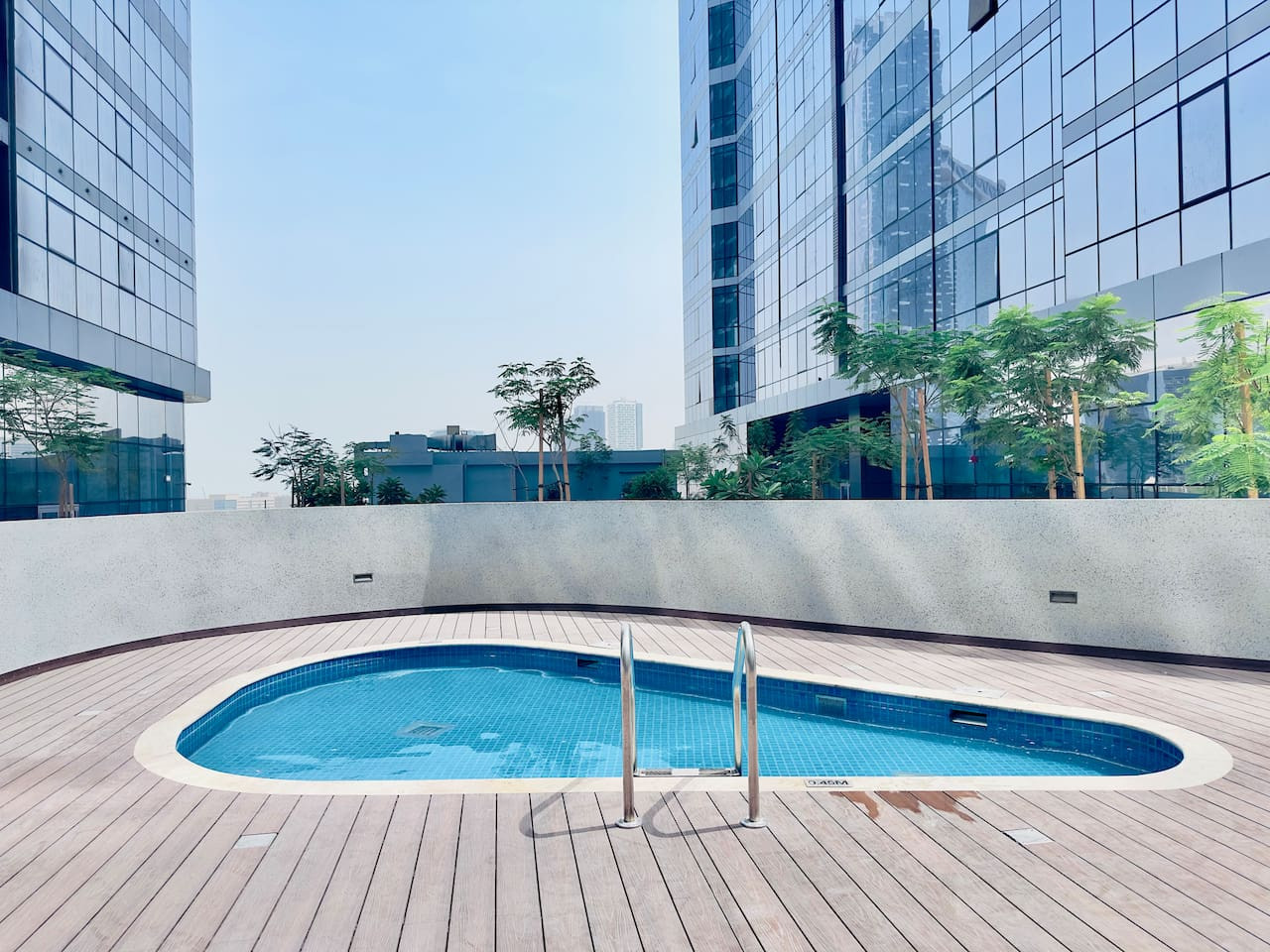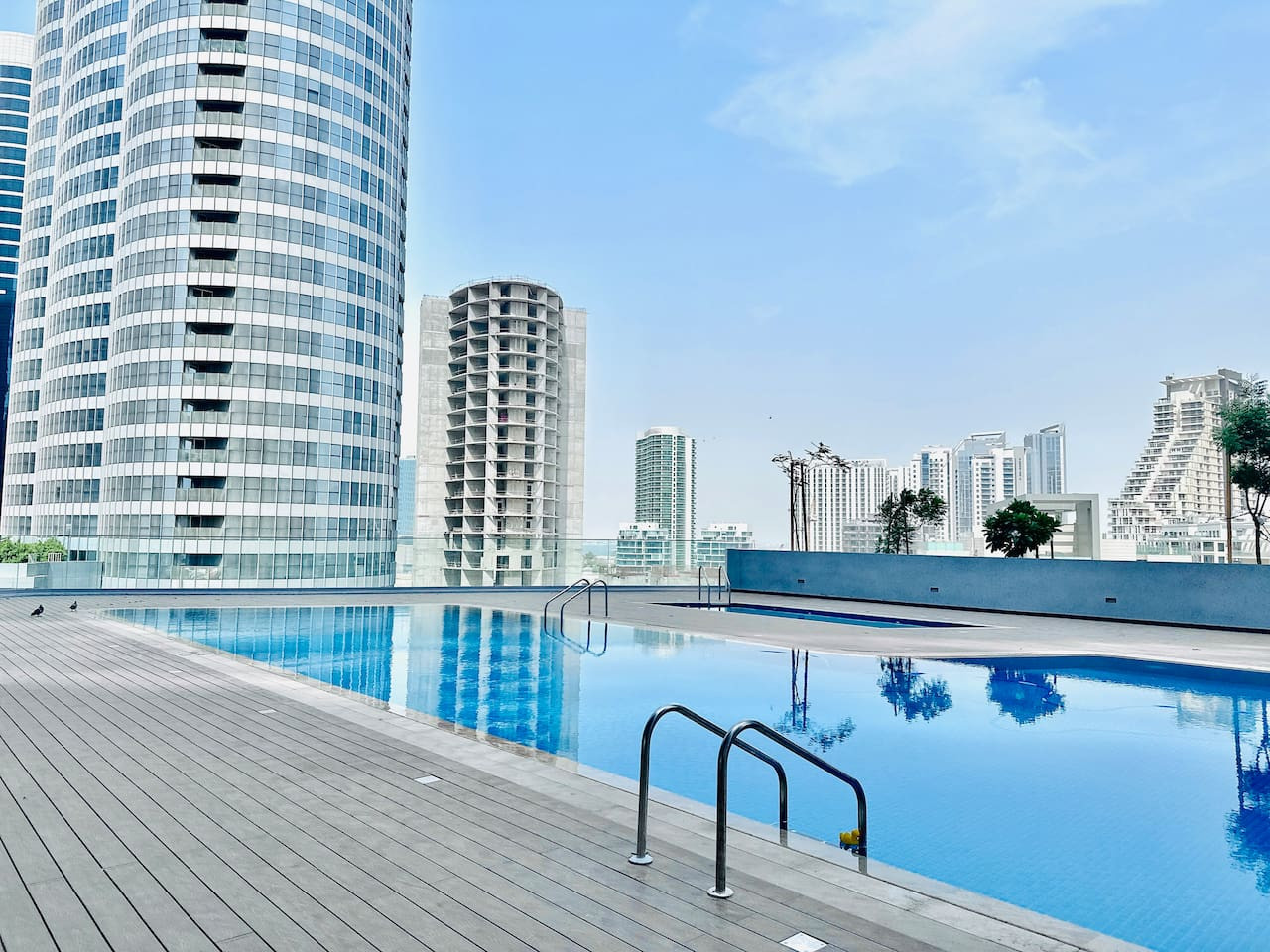 Guests also enjoy access to the building’s world-class facilities, including a swimming pool, fitness center, and secure parking.