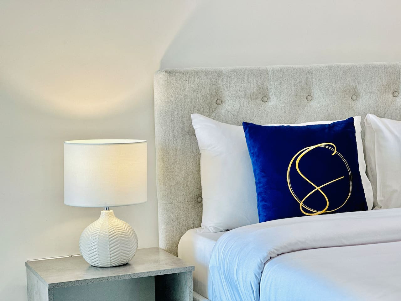 Bedroom 1: A cozy Queen-size bed for a restful sleep.