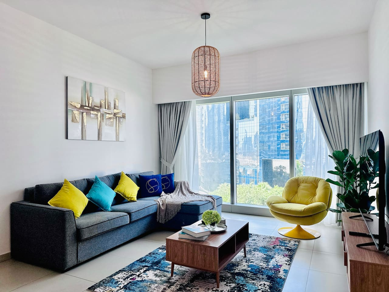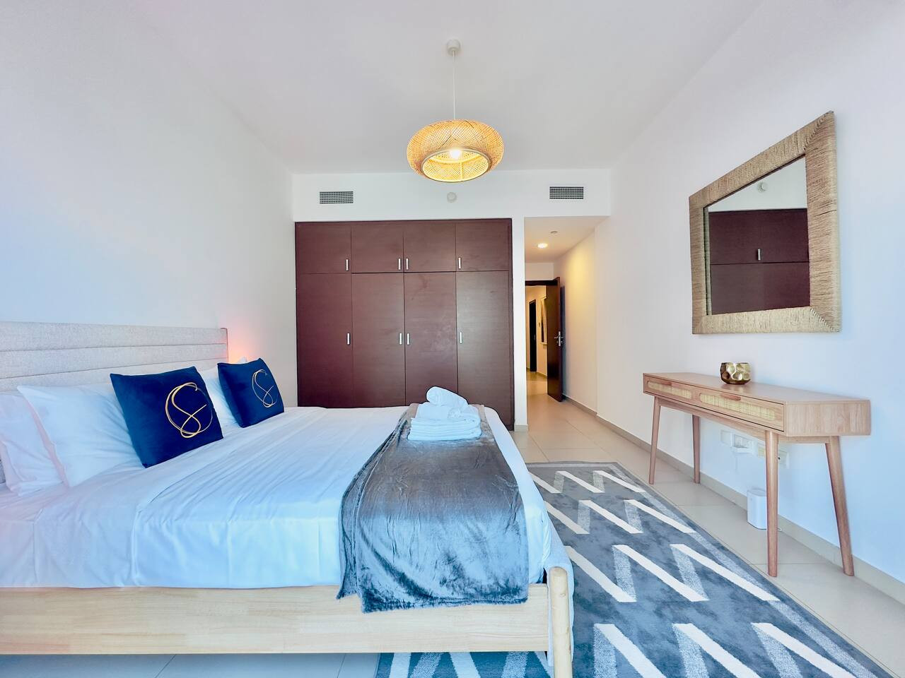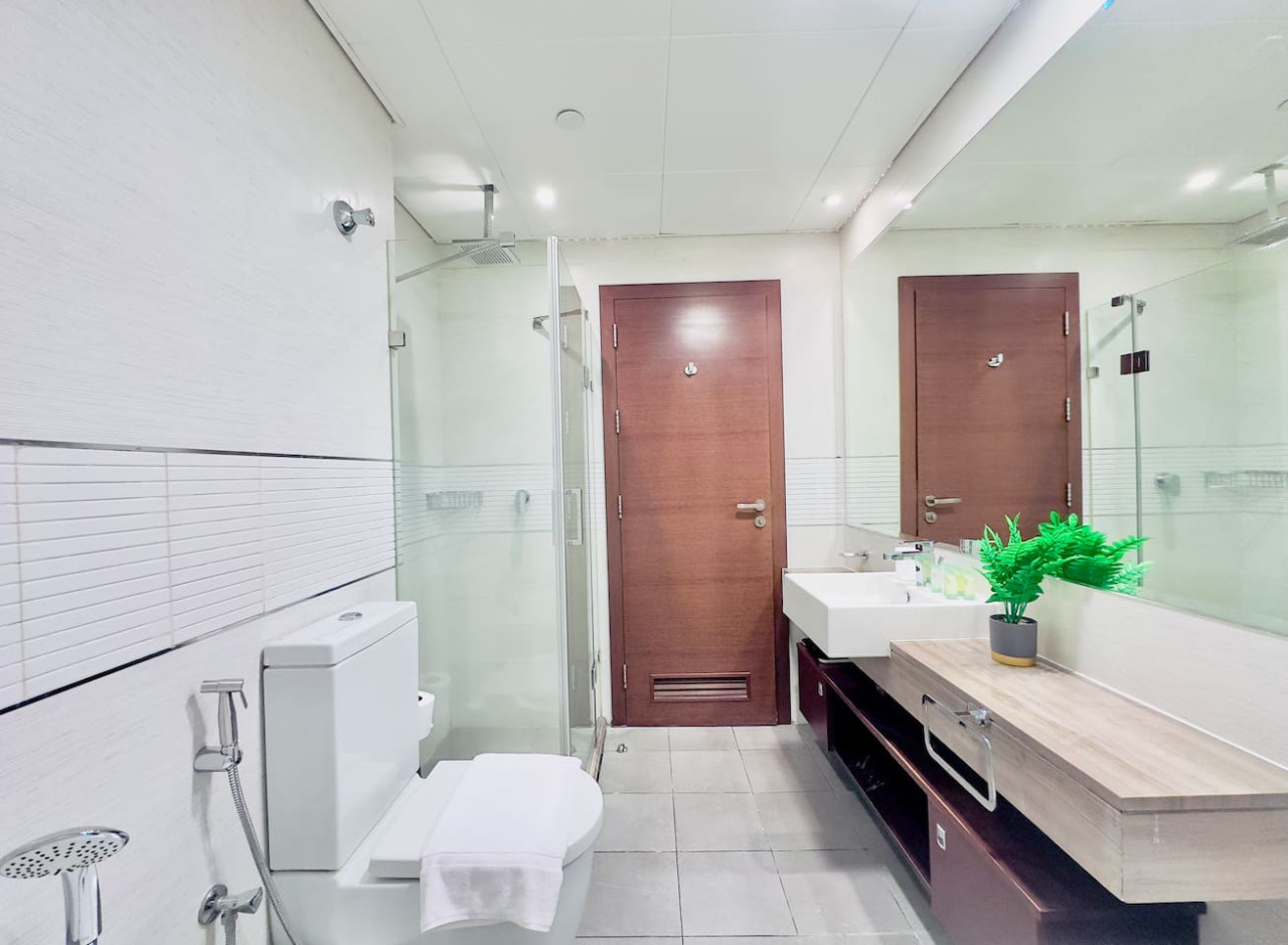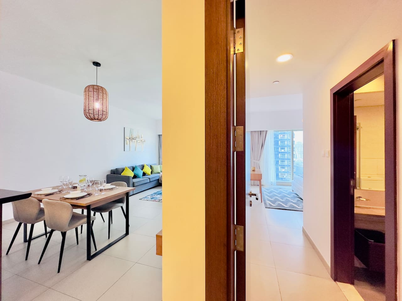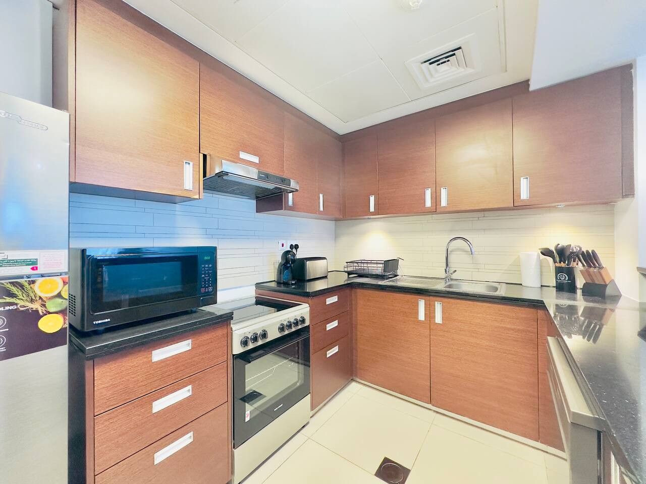 Guests have full access to the apartment and all building amenities, including swimming pools, gym, and recreation areas.