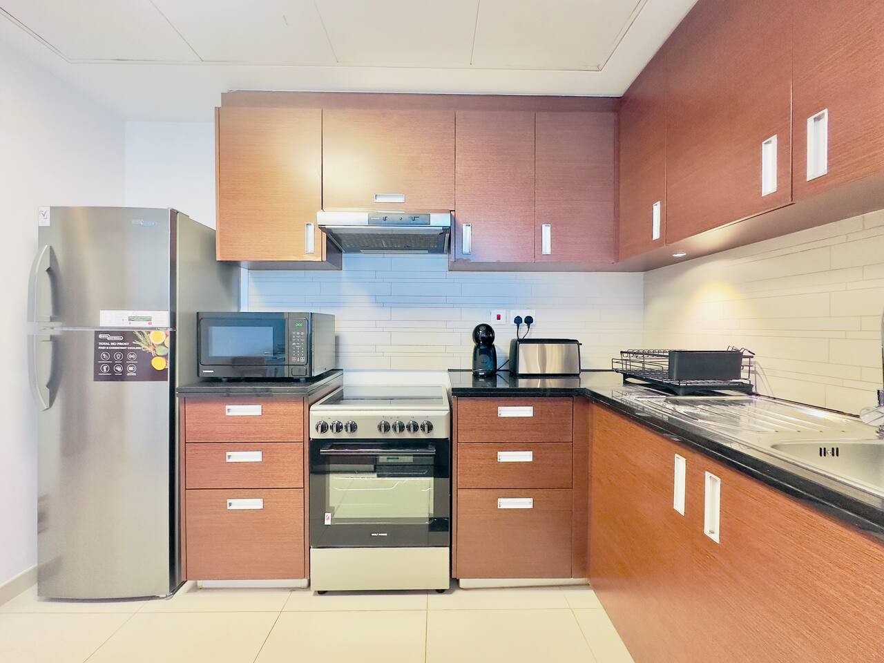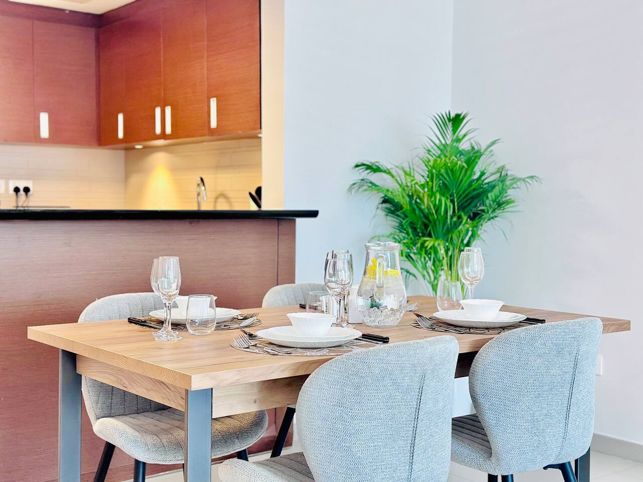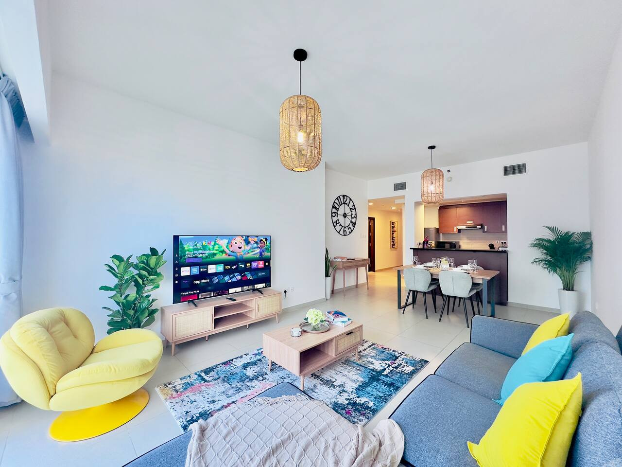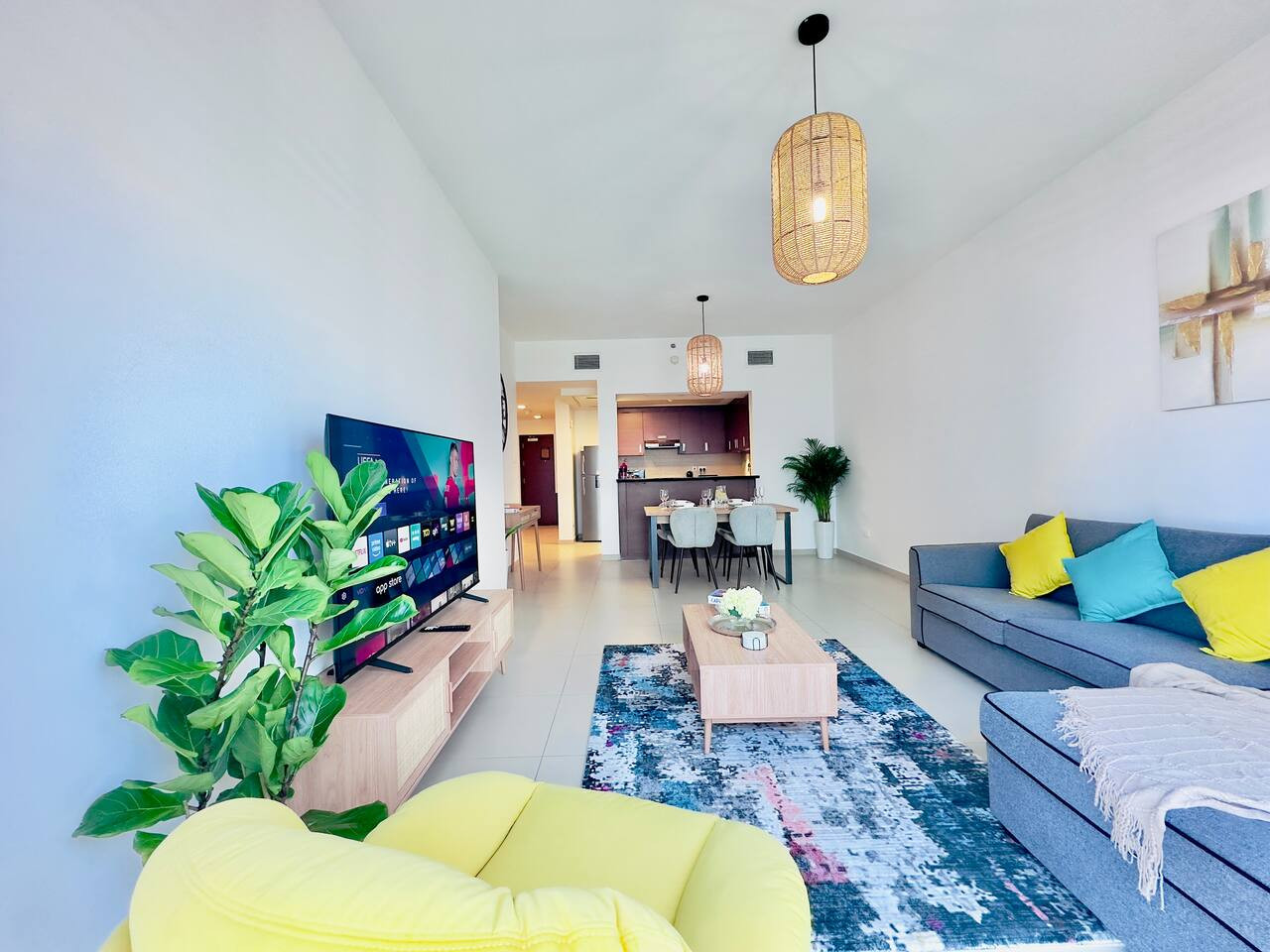 Guests have full access to the apartment and all building amenities, including swimming pools, gym, and recreation areas.